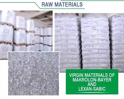 A polikarbonát szilárdsága 200-szor több, mint az üveg, míg a fél súlya. Ez gyakorlatilag törhetetlen. Az anyag szilárdsága és ütésállósága alkalmassá teszi olyan alkalmazásokra, ahol biztonság és biztonság szükséges.